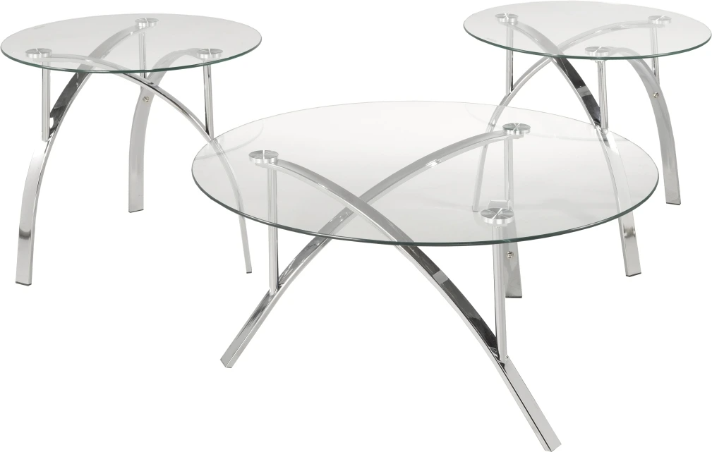 Crafted for fashion and function, the tables feature sturdy tempered glass table tops on durable, silver plated metal frames that provide firm support. The clear glass tops and curved, abstract frames give the table an airy, minimalist look that enhances any space without overwhelming it. A sophisticated choice for a living room or family room, this set of tables creates a sleek, coordinated look while at the same time providing ample surface space.