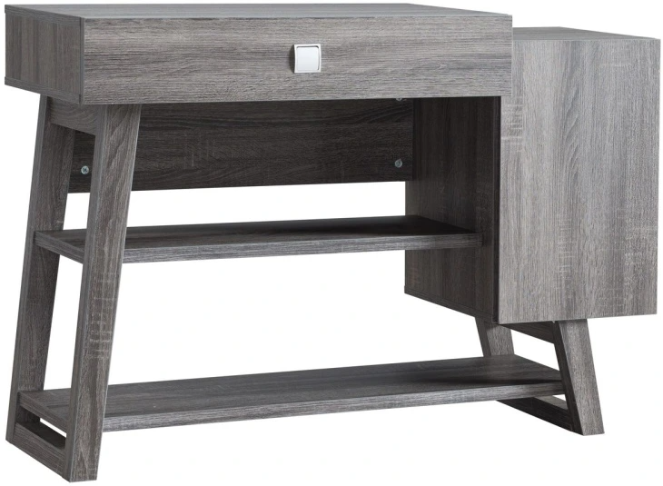 An additional storage drawer and storage cabinet let you tuck items neatly out of sight while keeping them close at hand. The versatile grey colour and brushed silver hardware will fit seamlessly into any existing décor scheme.
