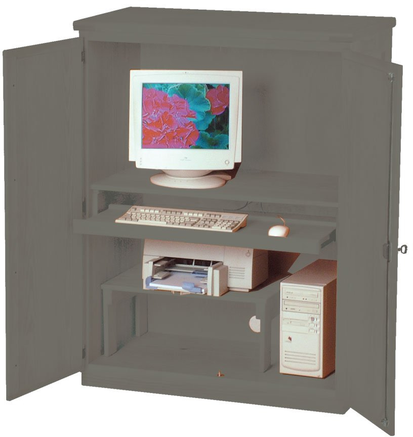 This cabinet allows you to hide your computer and peripherals behind locking doors. It includes a full width keyboard tray and a movable printer stand. Wiring access is provided through the back.Read More