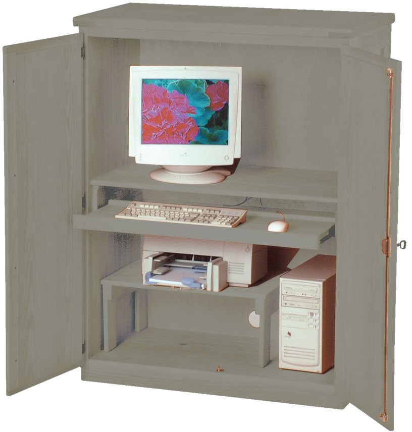 This cabinet allows you to hide your computer and peripherals behind locking doors. It includes a full width keyboard tray and a movable printer stand. Wiring access is provided through the back.Read More