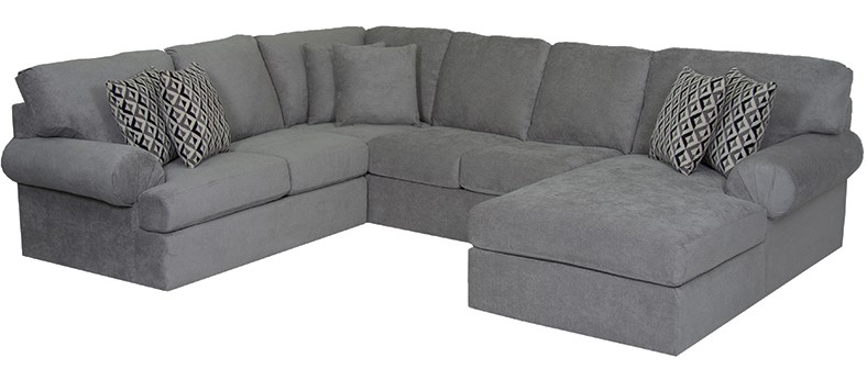 The Dynasty 3097 Gray Chaise Sectional features rolled arms and is a 3 piece sectional with a right facing chaise.Read More