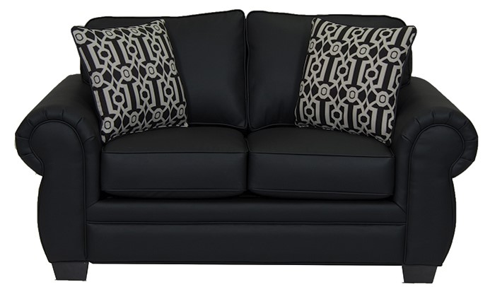 The Dynasty 4049 Black Sofa features rolled arms, tapered block legs and fits 2 people comfortably.Read More
