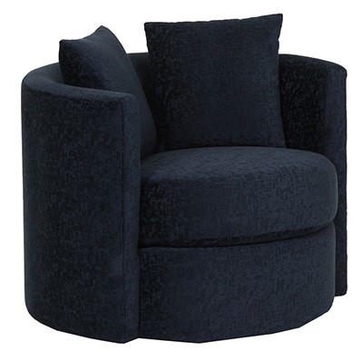 The Dynasty 1801 Dark Blue Swivel Chair features a round seat back with removable pillows.Read More