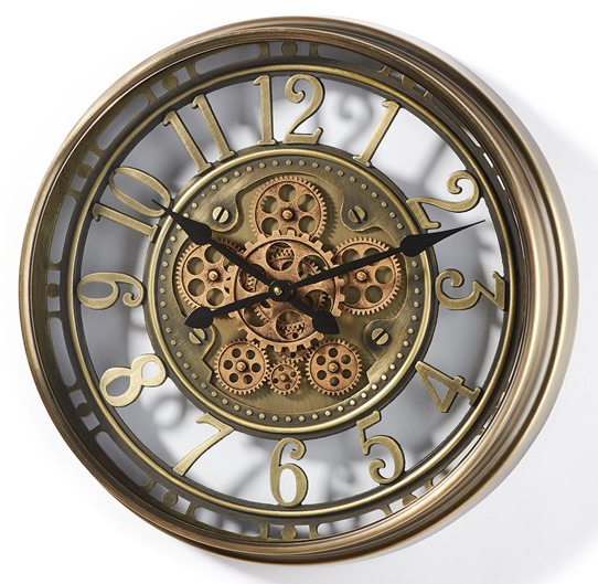Antique inspired wall clock features a traditional design styled with a gear center and contrasting black spade hands. Complete with two battery boxes, one is for clock movement and the other one is for gears.Read More