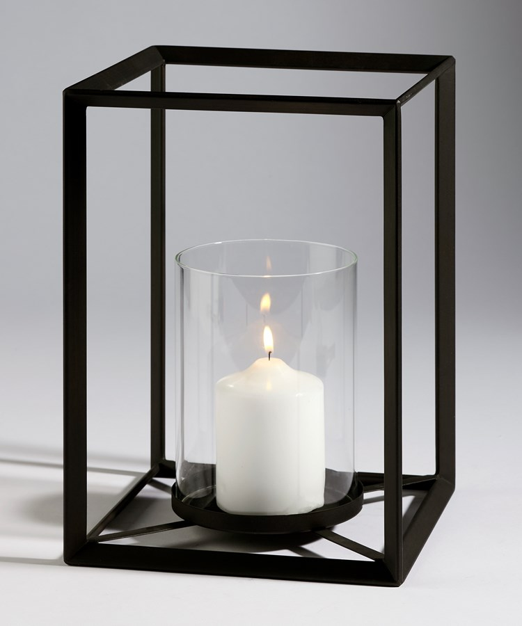 Contemporary glass and metal candle holder. Holds up to a 4 inch diameter pillar candle (maximum height of 6 inches).Read More