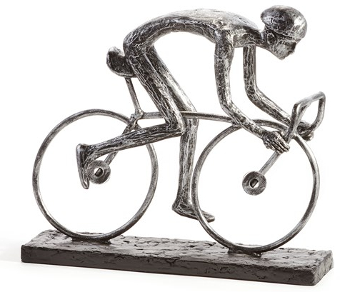 This contemporary cyclist figurine in black and silver is styled with a rectangular base.Read More