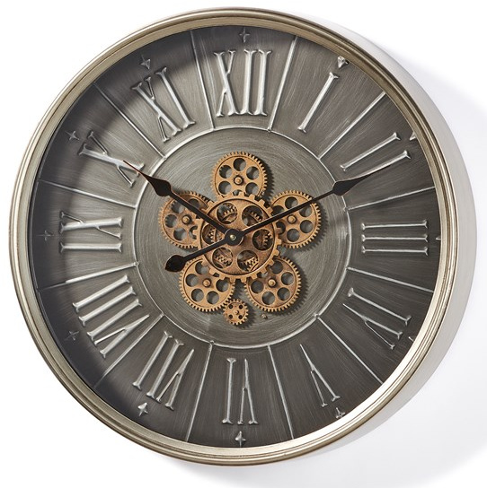 Featuring an industrial design, this wall clock is styled with a gear center complimented by spade style hands. Complete with two battery boxes, one is for clock movement and the other one is for gears.Read More