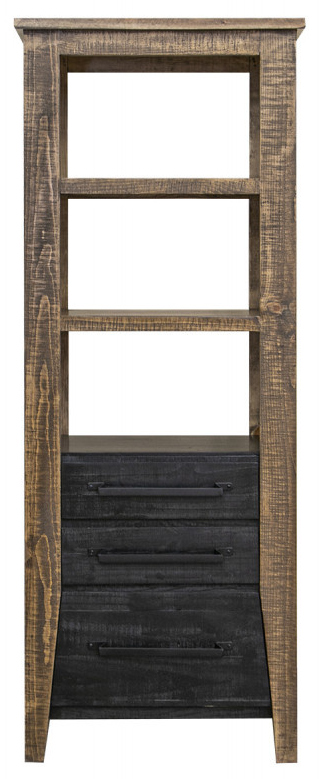 Bookcase features three drawers and three shelves.