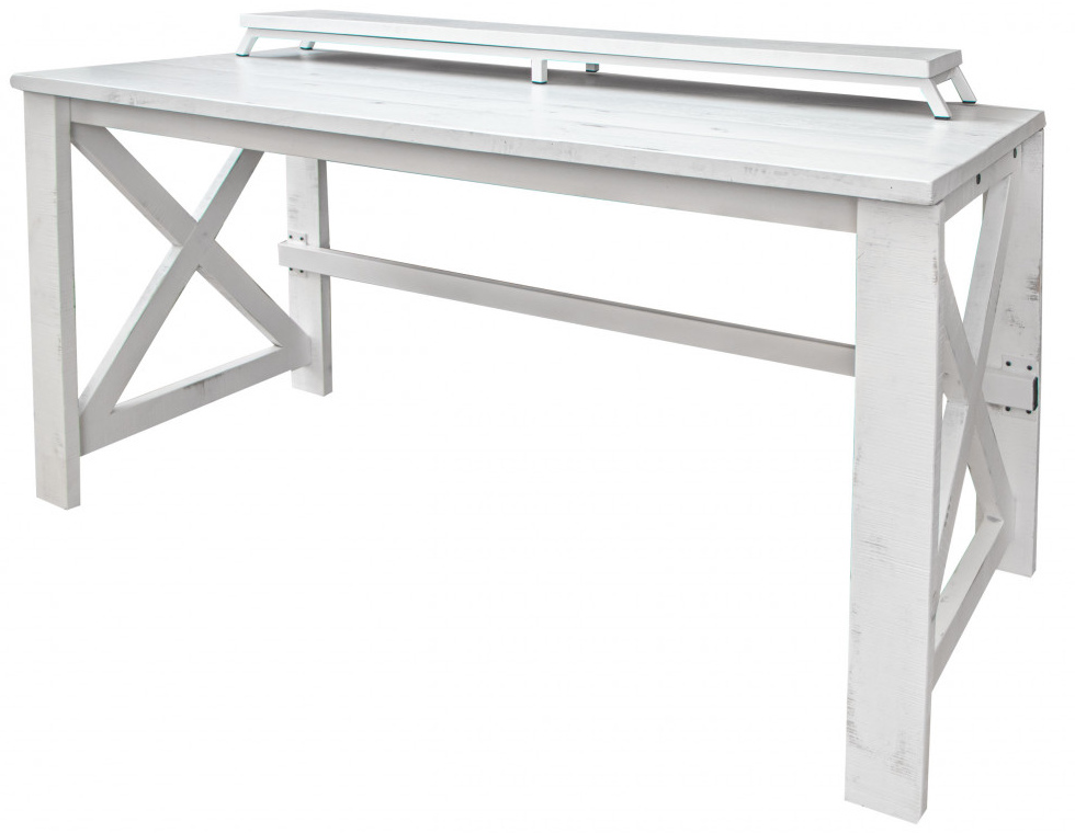 Desk features an extra computer stand to provide additional height for an ergonomic working position.