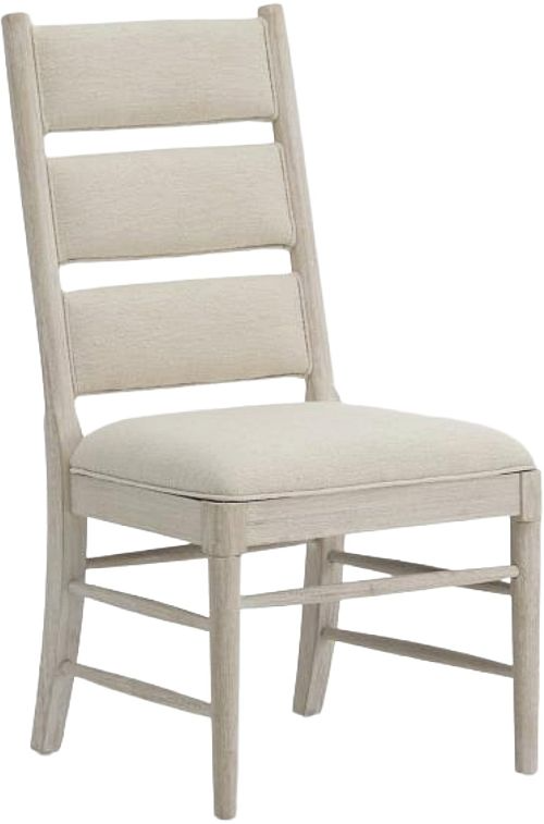 The portfolio includes three dining chairs options designed to fit a broad array of style preferences. A modern, upholstered ladderback chair feels comfortable in a relaxed everyday setting. A softly curved hybrid host chair is great for a more transitional aesthetic and a low profile, fully upholstered club chair makes a great choice for an easy, laid-back vibe. Each chair is upholstered in a textured neutral fabric. The statement buffet, with its beveled, mitered corners and statement hardware has plenty of storage capabilities for your everyday needs.