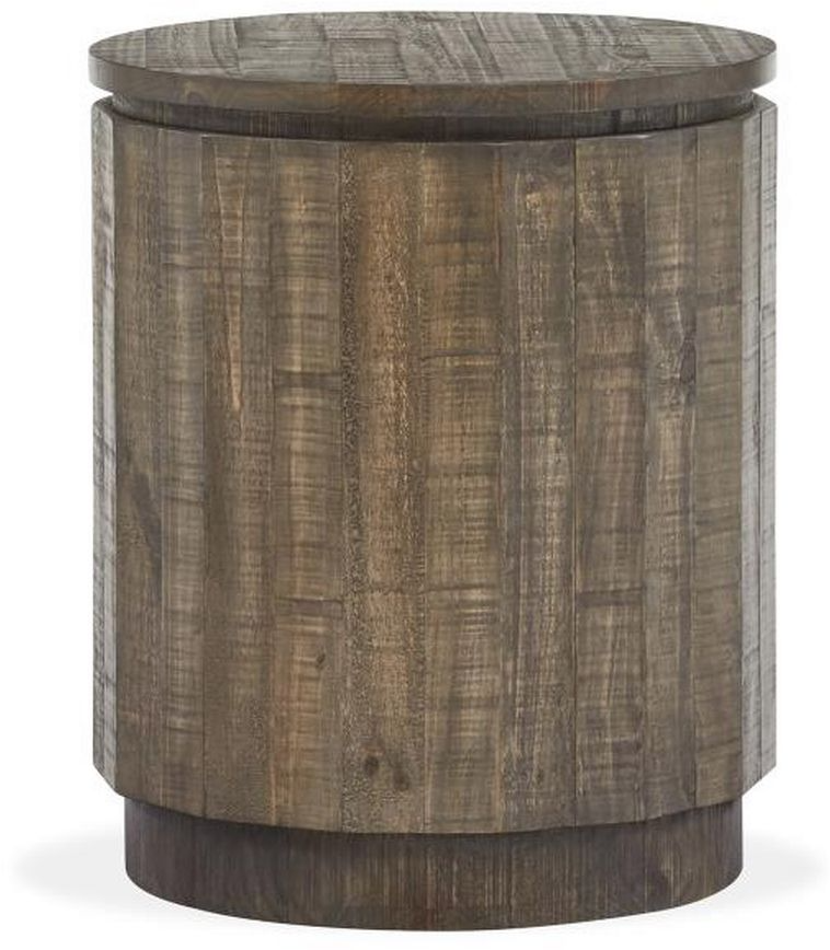 Elevate your living room with this Baisden End Table from Magnussen Home®. Shown in Tobacco finished, this round end table features a long-lasting natural material that can stand constant abuse. Make a bold statement by incorporating this stunning furniture to your home.Read More