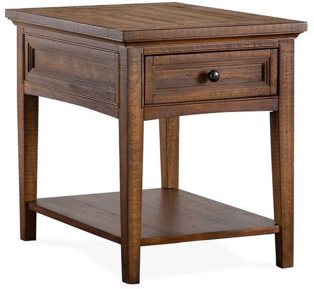 Welcome home to classic styling with the timeless Bay Creek table collection. Its easygoing style comes to life in an alluring Toasted Nutmeg finish accented with stunning Aged Bronze hardware. Offering generous storage options—both open and hidden—this multifunctional group makes it easy to keep your living spaces tidy and organized. With handsome detailing and thoughtful features, Bay Creek makes creating a beautiful home a breeze.