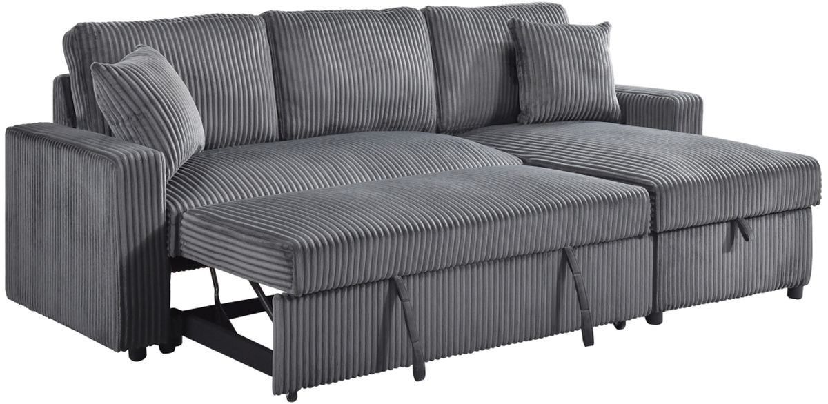 Includes 2 pieces: loveseat with pullout sleeper and reversible storage chaise