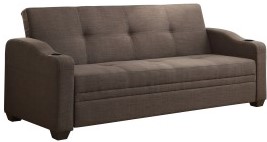 With a quick adjustment to the click mechanism, turns from a casual sofa into a flat platform perfect for sleeping or just hanging out. Offered in a gray textured fabric cover, the collection also features cup holders at arms for added convenience.Read More