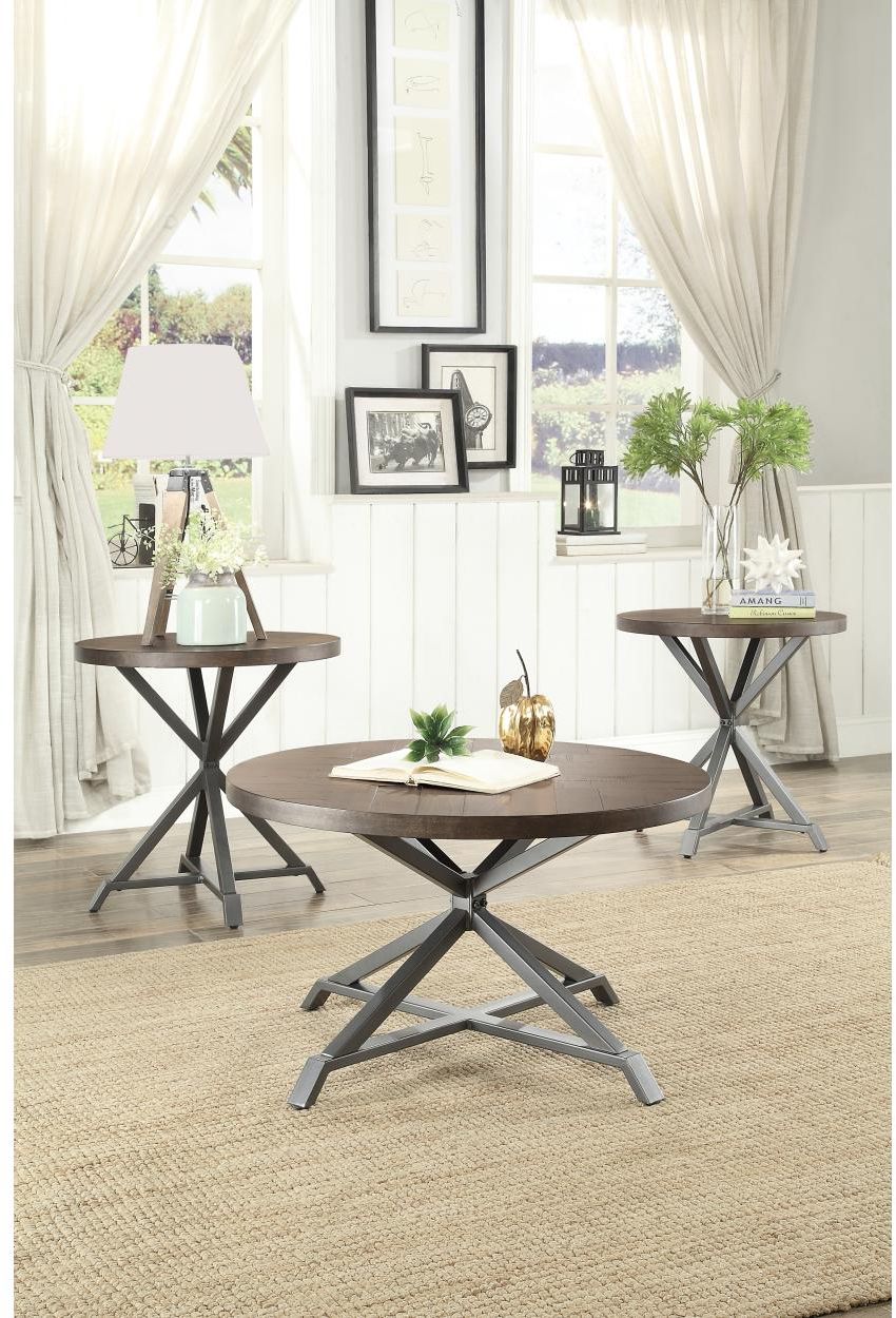 Wood and metal are combined to create the rustic industrial style of the Fideo Collection. Metal framing encircles the profile of the wood-topped cocktail and end tables of this 3-piece occasional collection. Pine veneer is featured in a herringbone pattern and have been given a burnished finish to complement the gray metal frame.Read More