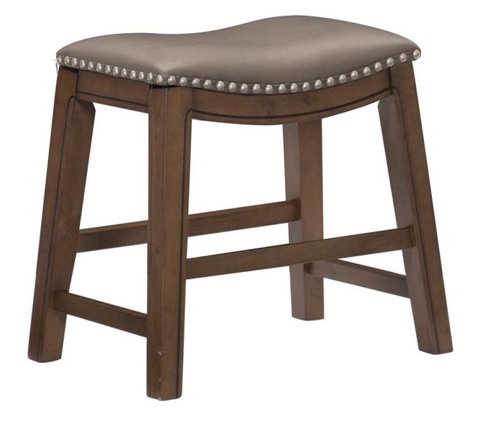 Upholstered stool in gray. Wood Frame. 18" in height.Read More