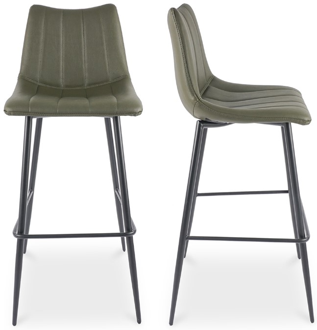 A contemporary bar stool that is as sleek as it is comfortable. The Alibi bar stool features striking vertical line stitches that add subtle detail to its monochromatic design. A soft vegan leather seat adds comfort and classic appeal.Read More