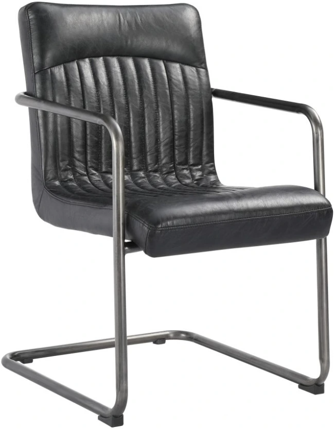 The Ansel dining chair features an industrial iron frame and easy-to-clean distressed top grain leather upholstery. The perfect chair for adding some originality and industrial design to your home. Outfit your entire table with this simple yet stunning design. Available with arms or without as a dining chair.Read More