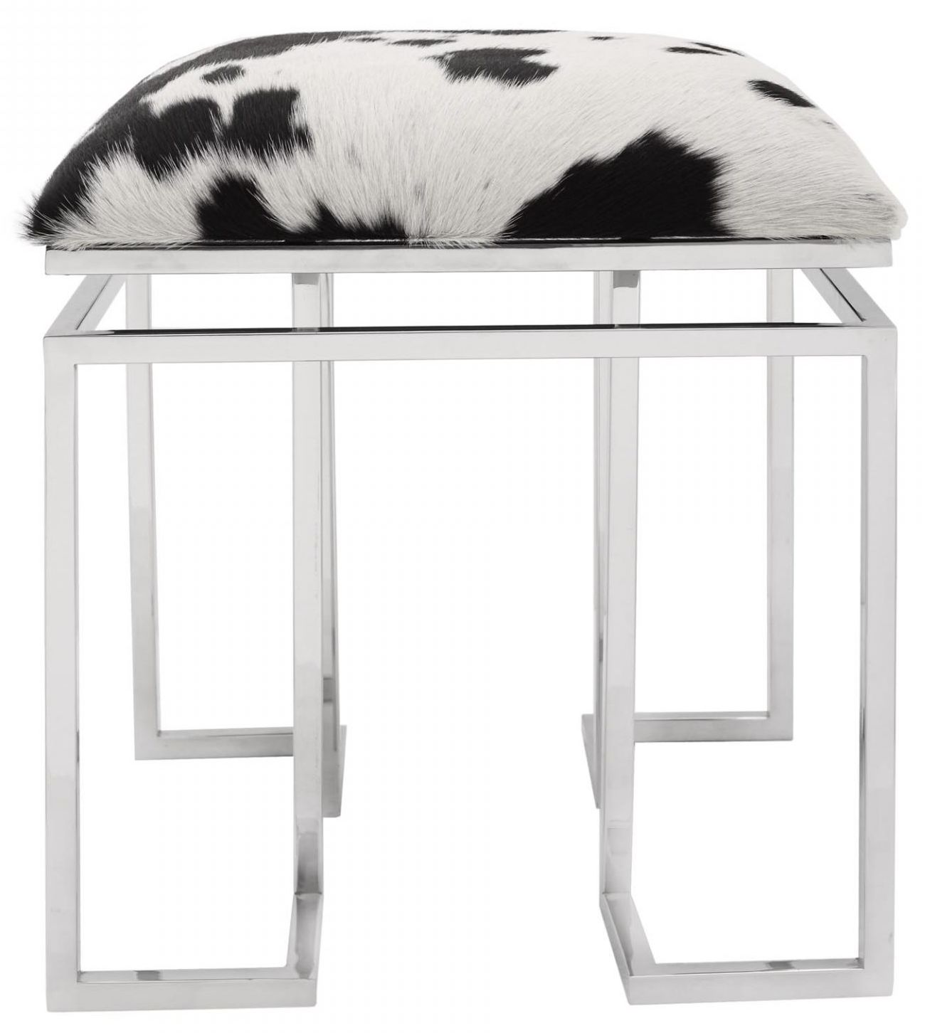 At Moe’s, we firmly believe that the home provides an environment of comfort and positivity. This belief is exemplified in the detail and care we give to our products. We strive to keep our stores warm and inviting; welcoming customers to come and nourish their desire for home décor. This modern stool combines unfinished cow hide on a slick stainless steel frame, for a cool designer style. Perfect as an accent or at a vanity or make-up table.