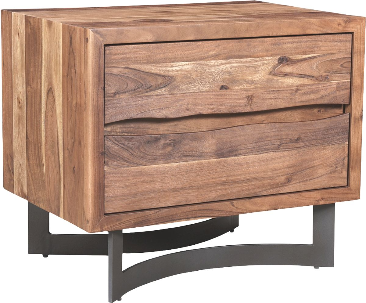 The Bent collection puts nature’s craft front and center. Made of beautiful solid acacia wood, rustic live edge detailing shows off the unique knots and whorls of the wood. This nightstand features 2 drawers on easy slide glides, offering a convenient storage solution for your bedroom space.Read More