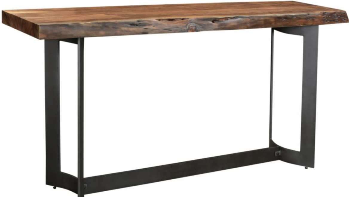 Crafted from solid acacia wood, the Bent Console Table features a natural look with a true live-edge and heavy-gauge, iron legs. Each piece is a work of art that will look great for years to come. The smoked-finish enhances the natural wood grain, giving the table a warm, caramel colour.Read More