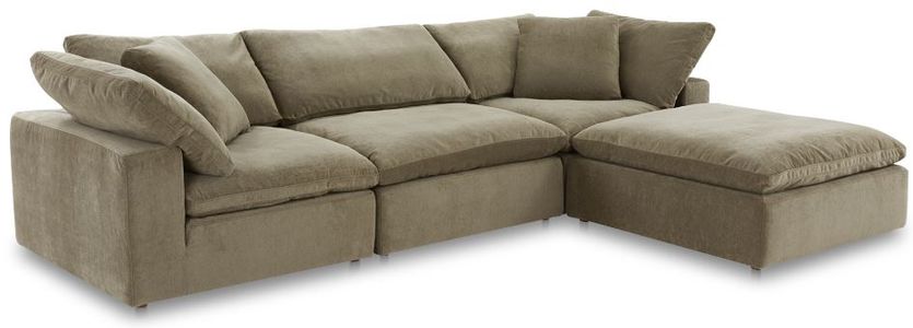 The Clay modular sectional is upholstered with our LiveSmart® performance technology fabric, that is moisture repellent, stain resistant and offers barrier protection. Its cushions are filled generously with feather and fiber blend, and channeled and double wrapped to maximize durability.Read More