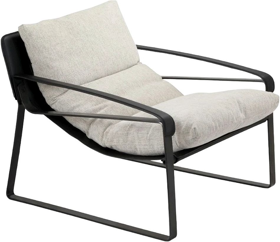 It also has a distinctively sturdy leather sling that’s reclined for all sorts of relaxation. A little sculptural with a luxe dash, this chair’s sleek and robust iron frame adds an industrial edge to the smooth black leather.