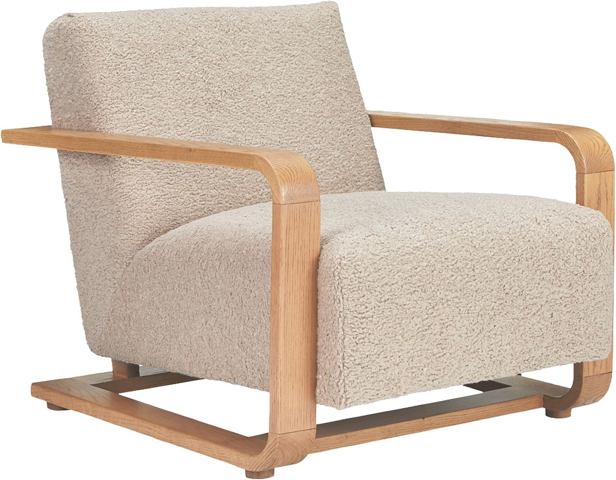 While generous in its proportions, the wide, sturdy arm profile is perfectly complemented by the plush softness of faux shearling upholstery, offering an irresistibly inviting tactile experience.