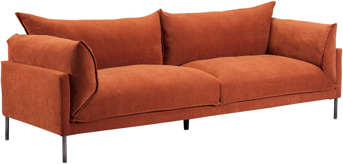 With Scandinavian styling, a softly blocked silhouette and burnt auburn fabric upholstery, the Jamara sofa balances everyday simplicity with deep-seated comfort and plush cushioning. Find beauty in practicality with slim steel legs, clean stitch lines and removable seat and back cushions.Read More