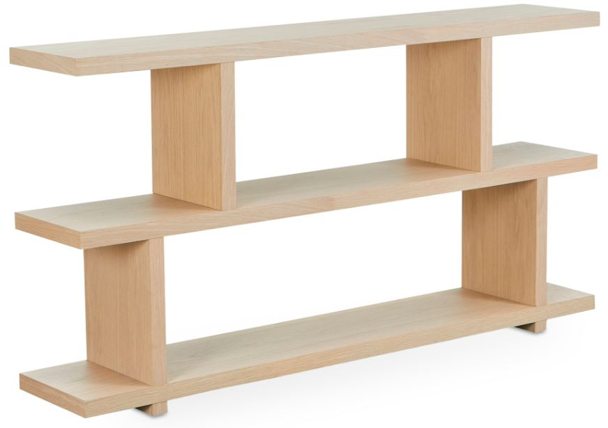 The Miri shelf's open concept and Mid-Century Modern style make it an ideal space divider and/or bookshelf. Slide two shelving units together to create a larger seamless unit with three levels of space. Made with white oak veneer over MDF and PU lacquer, this shelf is a testament to versatility in design.Read More
