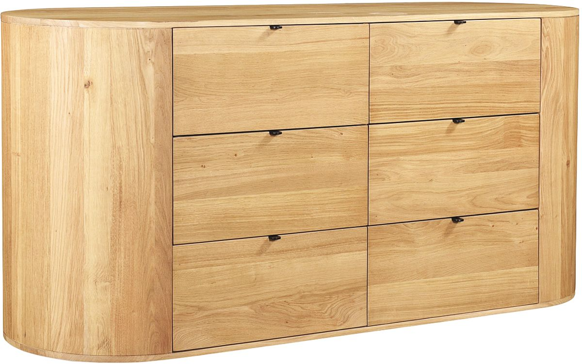 No sharp corners here. The Theo dresser’s rounded silhouette and light natural oak finish bring a breezy, organic feel to bedroom storage. With six roomy drawers, soft-close glides, and subtle pull tabs, it’s a study in modern minimalism that still gets things done.Read More
