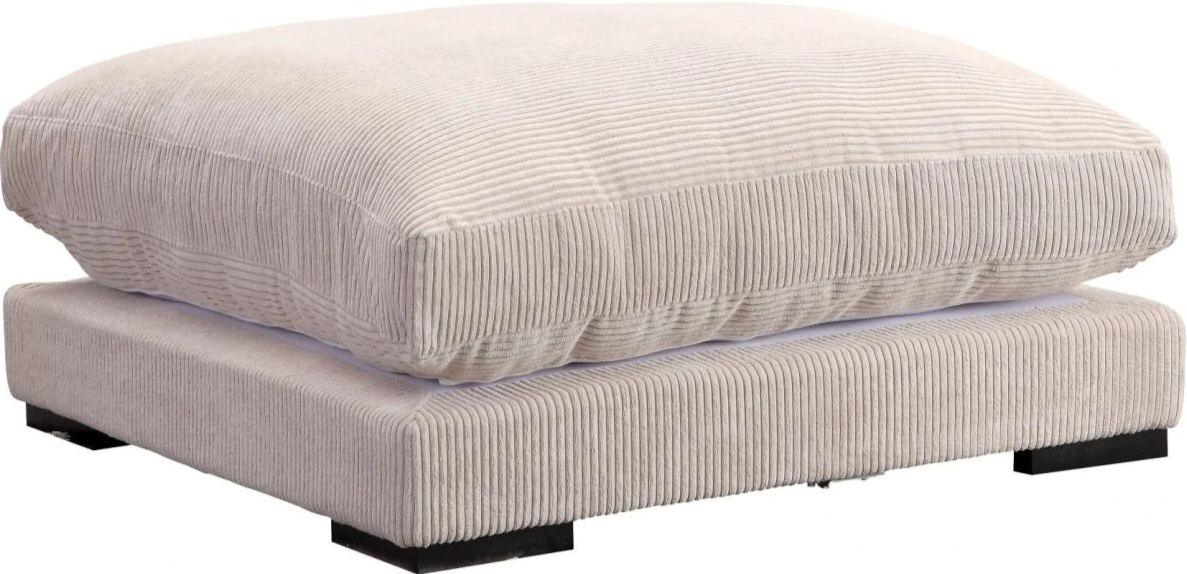 Tumble's corduroy naturally softens the sharp edges and hard lines of other contemporary accents like coffee and end tables with its inherent plushness. An ideal ottoman framed in solid eucalyptus wood with extra, fully down-filled cushion. This ottoman's soft corduroy will immediately add dimension, intrigue, lift, and comfort to any environment.