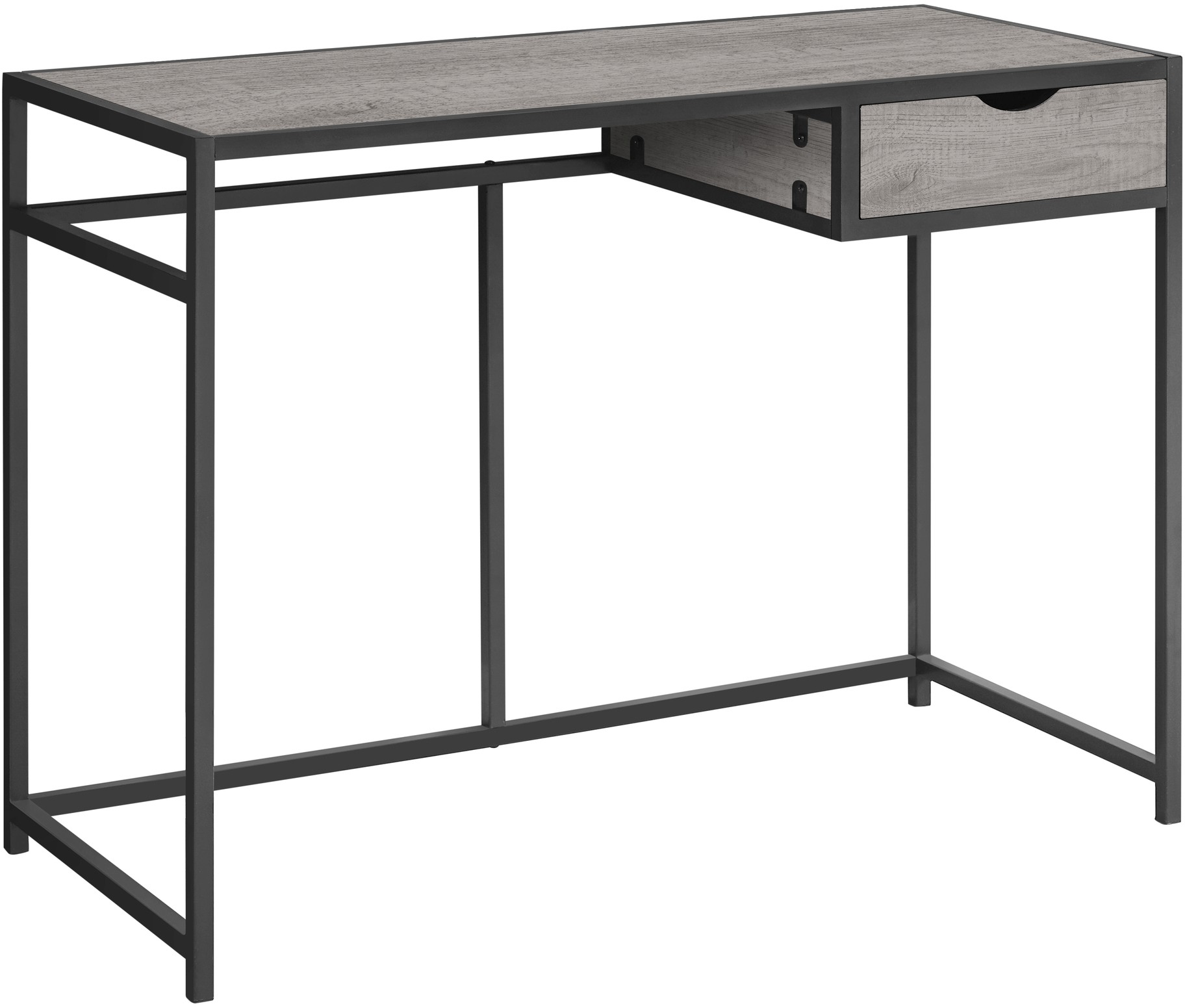 Whether you're starting college, university, your home business or simply dressing up your existing workstation, this industrial-style office desk in grey with its driftwood finish gets the job done. Feel free to use it as a computer desk, writing station, or study table. Put together in a thick panel, the sturdiness pairs with its simplistic style to provide the perfect new desk for your office space. With ample surface area for your laptop, a lamp and even some decorations, the desk also offers a storage drawer to keep other supplies and accessories neat and tidy. Work comfortably in your home, condo, dorm or apartment.