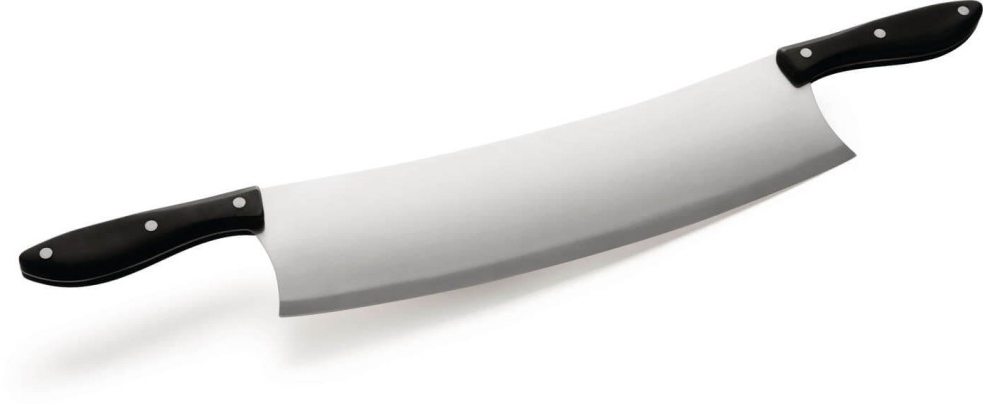 Holding the wooden handle, rock the mezzaluna-style stainless steel blade back and forth on a pizza fresh off the grill until the crust is cut cleanly through. Rotate and repeat until your pizza is sliced to perfection. Comfortable, riveted handles reinforce the gently curved stainless steel blade for a natural rocking motion. Look like a total PRO when you pull this Rocking Pizza Cutter out at your next pizza party barbecue.