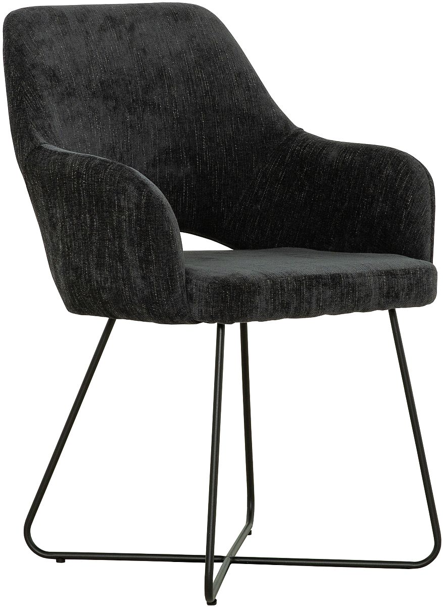 Sleek black metal sled legs enhance stability and modern style