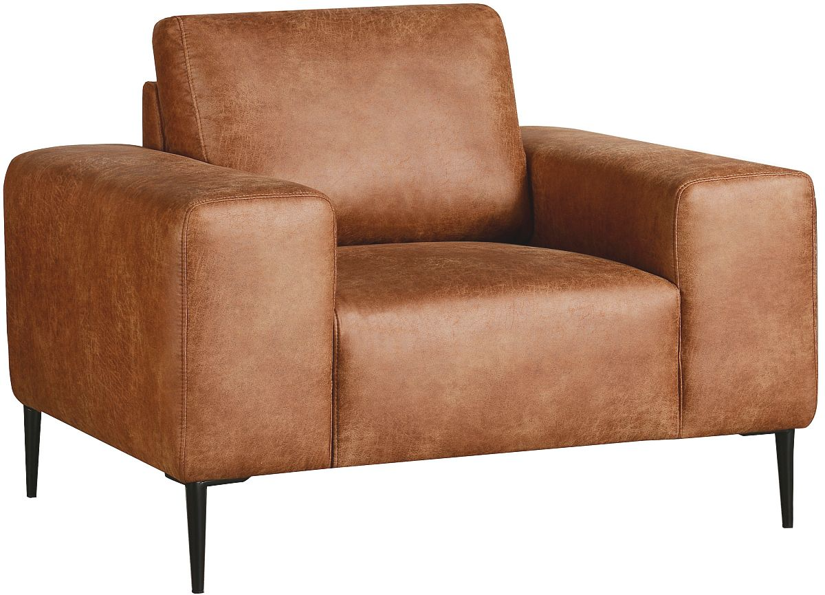 Say hello to the Shonda chair—your new go-to for instant style and comfort. Wrapped in gorgeous cognac faux leather and finished with sleek black legs, this chair brings a modern edge to any corner of your home.Read More