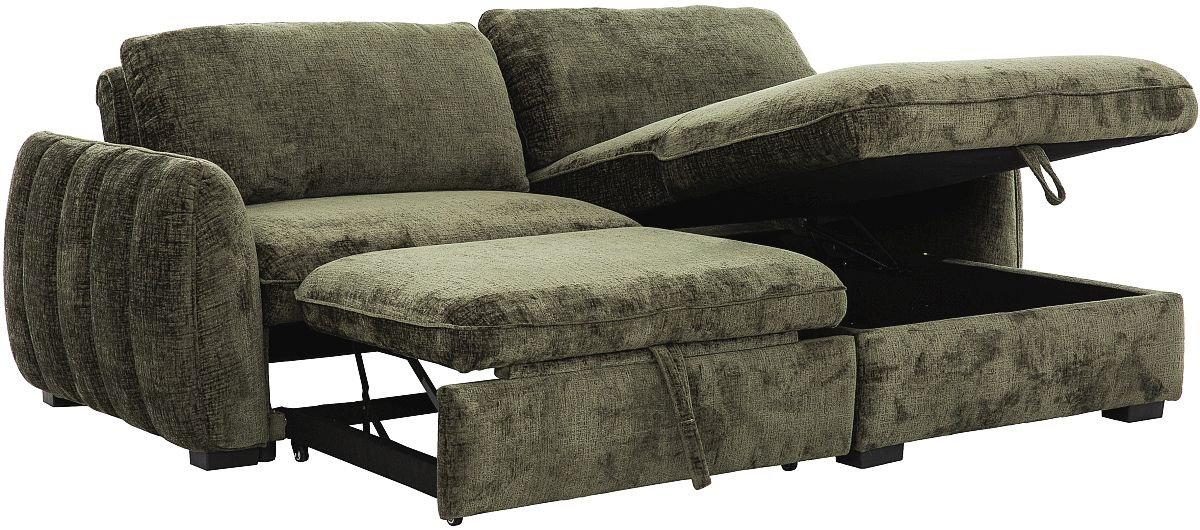 Whether it’s movie marathons or overnight guests, the Tregenna media sleeper adapts to your life in style. Upholstered in forest green fabric with tonal stitching, it features plush cushions, a wide chaise, and a hidden pull-out sleeper—so comfort is always close.Read More
